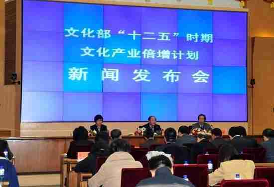 2月28日下午,,文化部在京召开新闻发布会,,正式向社会发布《文化部“十二五”时期文化产业倍增计划》,,,,提出了 “十二五”期间文化部门管理的文化产业增加值年平均现价增长速度高于20%,,,,2015年比2010年至少翻一番,,,实现倍增的奋斗目标。。。